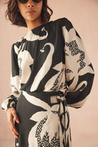 We love a great blouse. This one stars a beautifully balanced shape with billowing sleeves that cuff at the wrist and a gathered, pleat-like neckline—a very chic canvas for our hand-painted designs.
