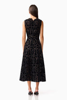 Refined and romantic, the Eris Fit & Flare Midi Dress in Black is a standout choice for elevated evenings. Crafted from intricate floral velvet lace fabrication, this velvet lace midi dress balances classic elegance with modern structure.