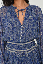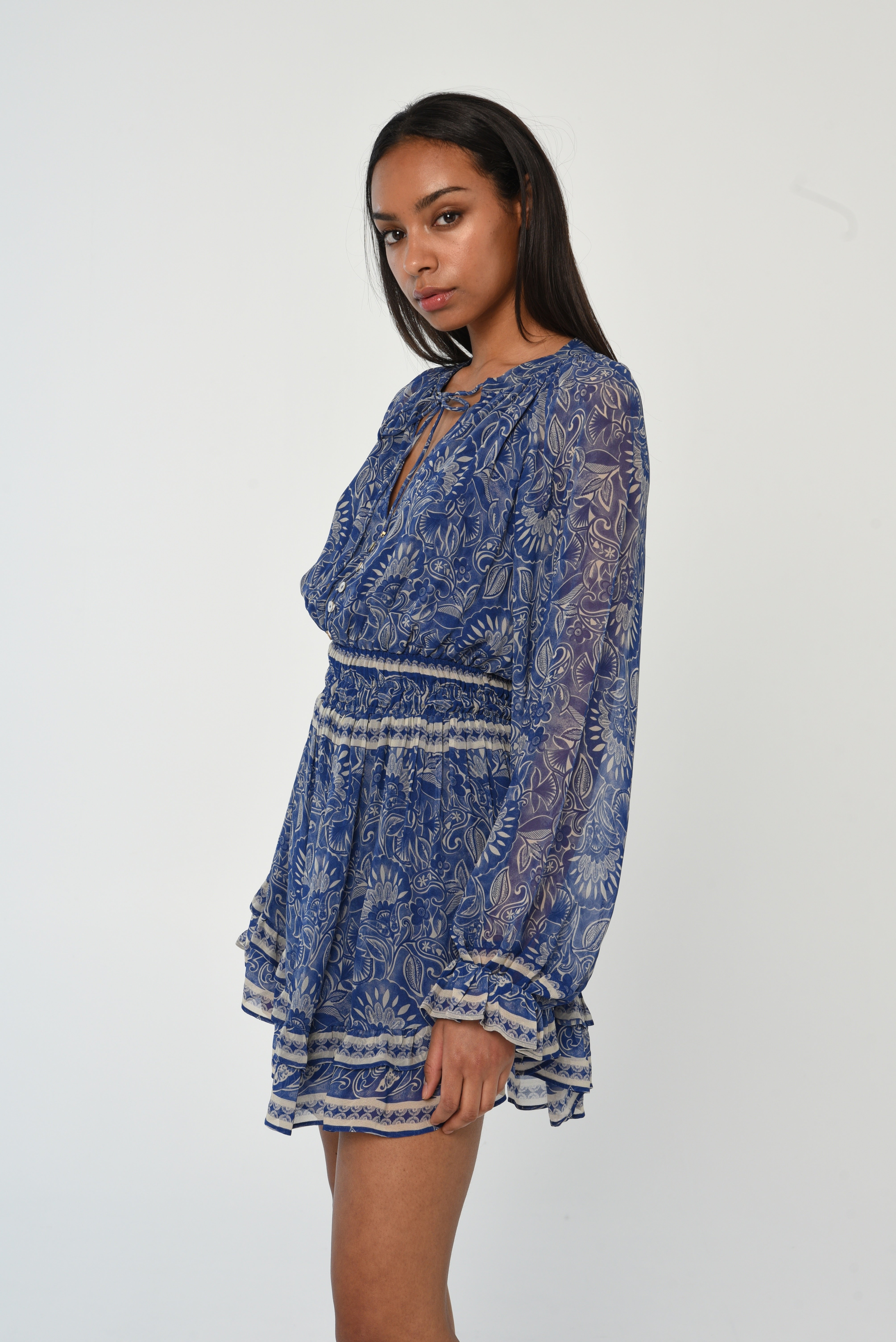 The Juliet Dress is offered in a flowy viscose georgette fabric in the Arabesque Print. This print is thoughtfully placed, highlighting details on the dress such as the V neckline, smocked waist, elasticated cuffs, and ruffled hem. The bodice and skirt of this dress is fully lined.