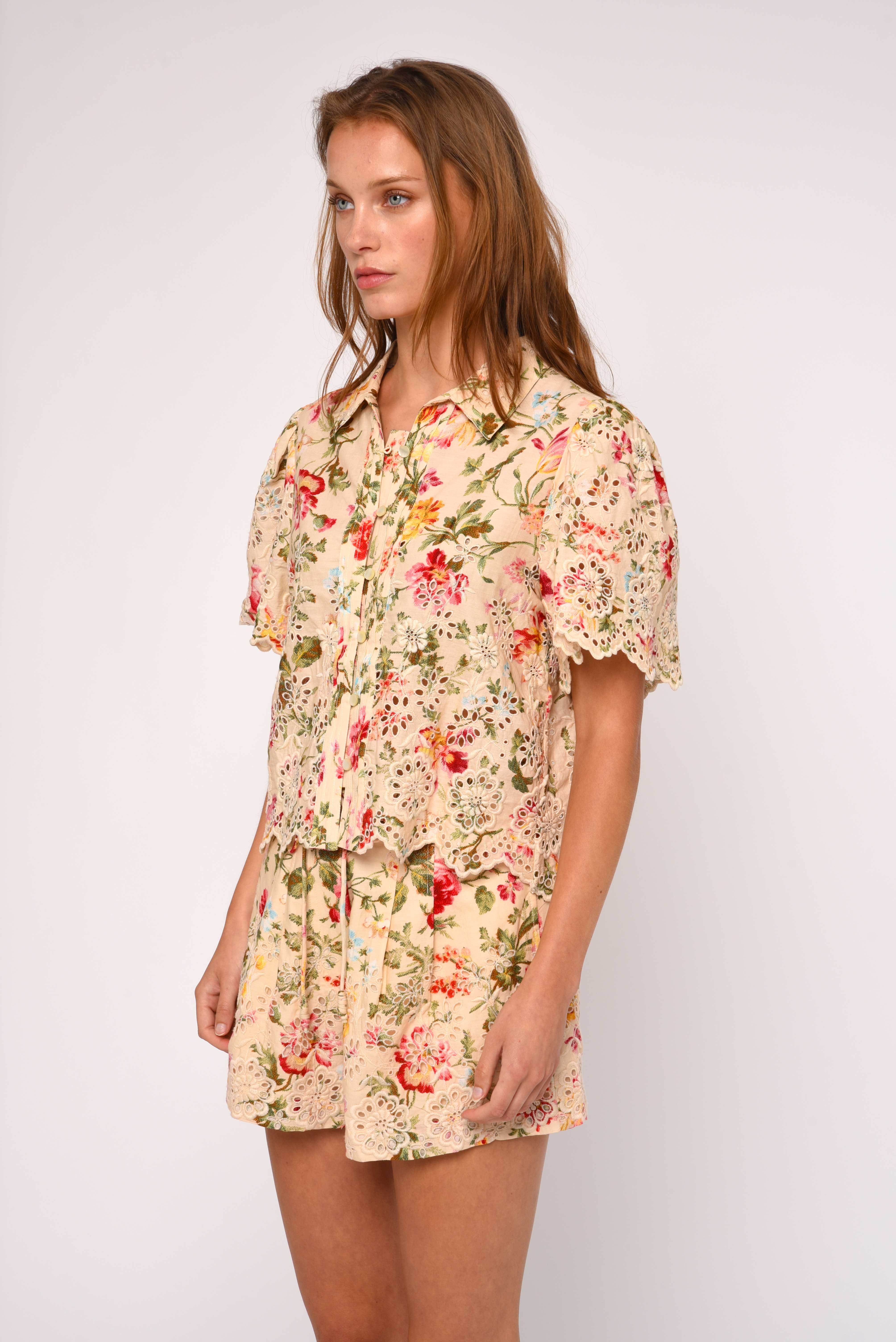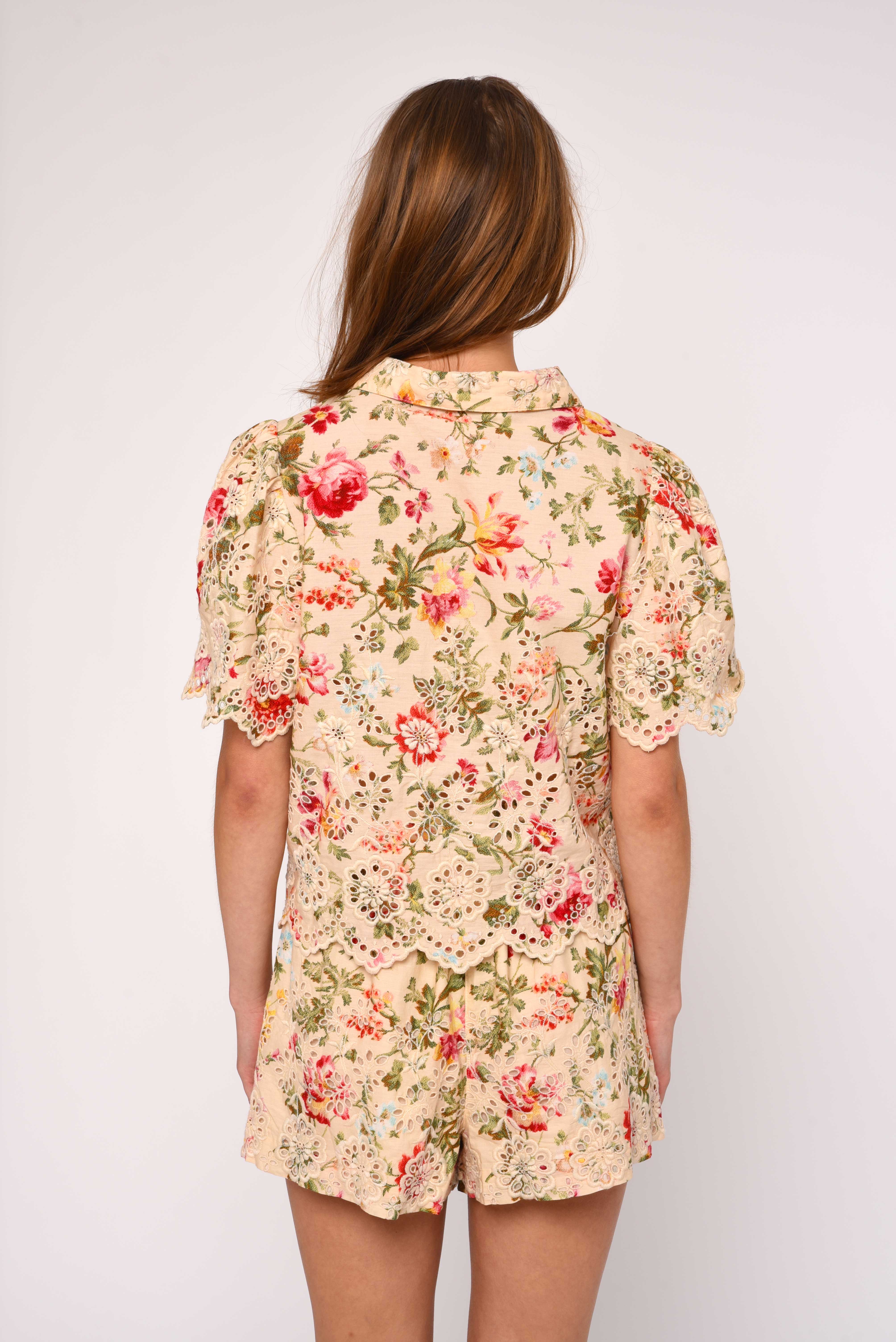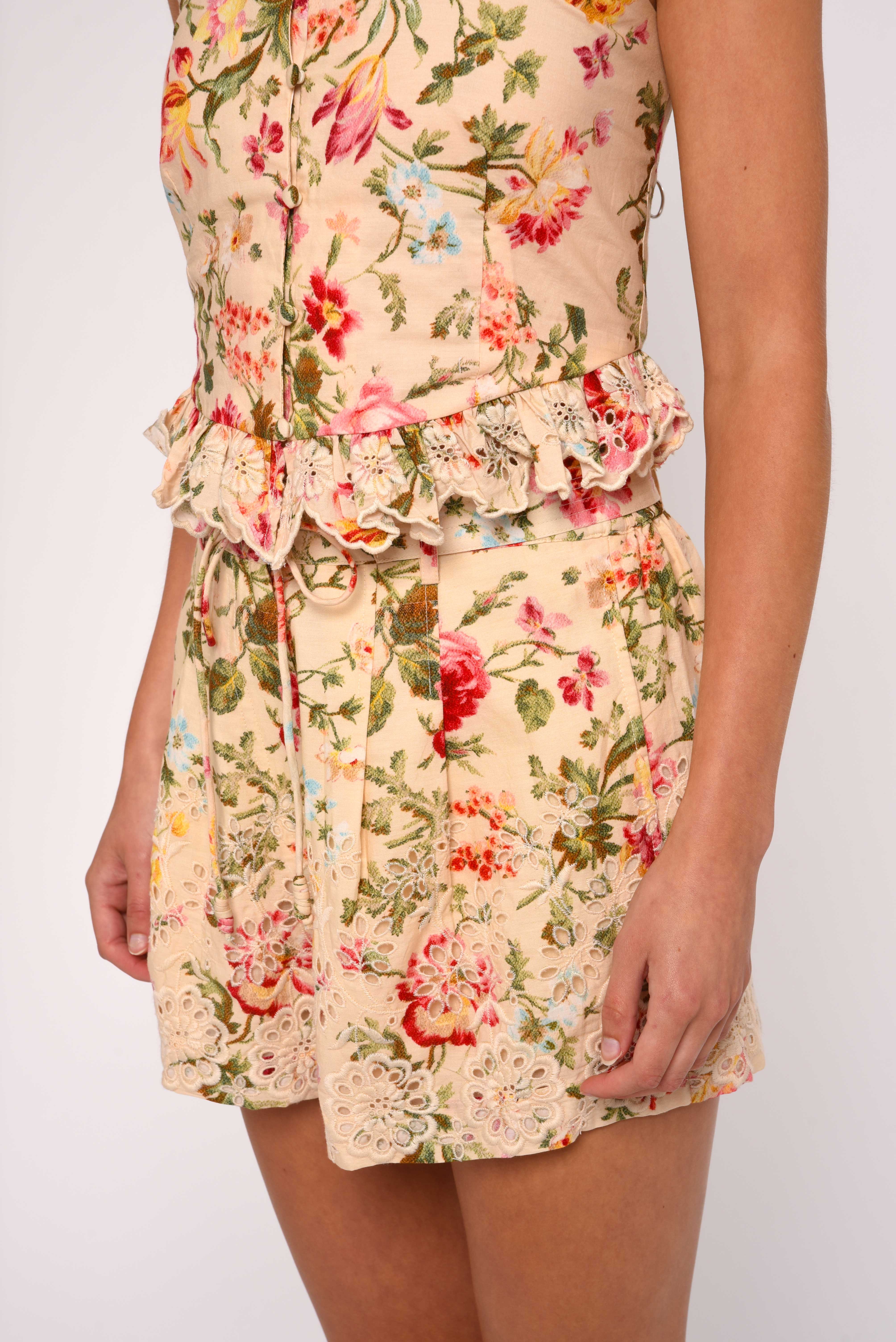 Love the Label's best selling Sammie Short is back! This time in a beautiful vintage inspired floral with an intricate embroidery around the hem. This short is a perfect combo of being tailored with ease having a front zipper and elastic back waist. If you want a full set, wear back to the coordinating Abigail Top.
