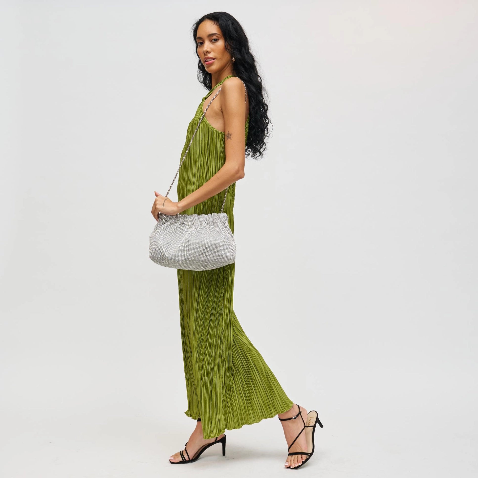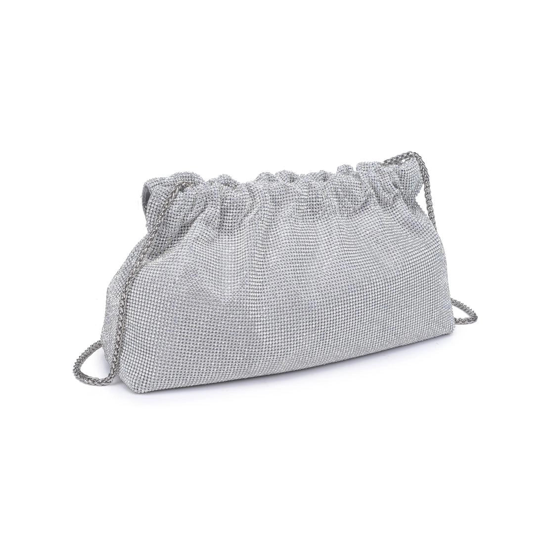 Exterior Details: Detachable Chain Strap, Rhinestones All-over, Ruched Design