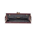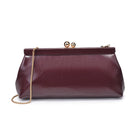 The Burgundy Joplin Clutch elevates your ensemble with its sophisticated design. Featuring a sleek silhouette and an elegant gold chain strap, it offers versatile wear for hands-free convenience. Its spacious interior holds all your essentials while maintaining a polished and refined look, making it perfect for any occasion from day to night.