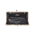 The Gold Isabella Clutch combines elegance with practicality in a sleek silhouette enhanced by a charming clasp closure. Its roomy interior comfortably holds your essentials, from your phone to lipstick, making it an ideal companion for both daytime outings and evening events. Perfectly designed for seamless style and functionality.