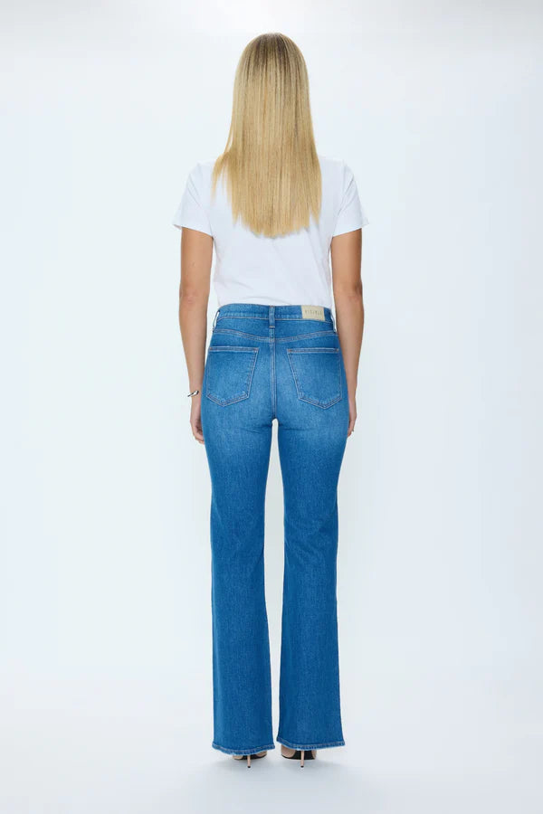 Evie elevates the classic bootcut with a high rise and slim fit that gently widens at the calf for a leg-lengthening effect. Constructed from comfort-stretch denim in a medium indigo wash, the 33" inseam creates an uninterrupted line that’s versatile for every day—and every look.