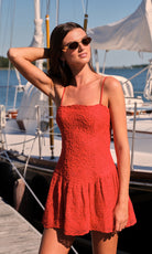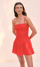 Get ready to turn heads in our Gabriele mini. This flirty number features a scallop neckline, paired with a v-drop waist that'll have you feeling like the main character. Crafted from delicate mesh with cording details, it's got just enough texture to keep things interesting. In a fiery red hot shade, this dress doesn't do subtle— it does unforgettable. Perfect for nights when you want to make an entrance and a statement.
