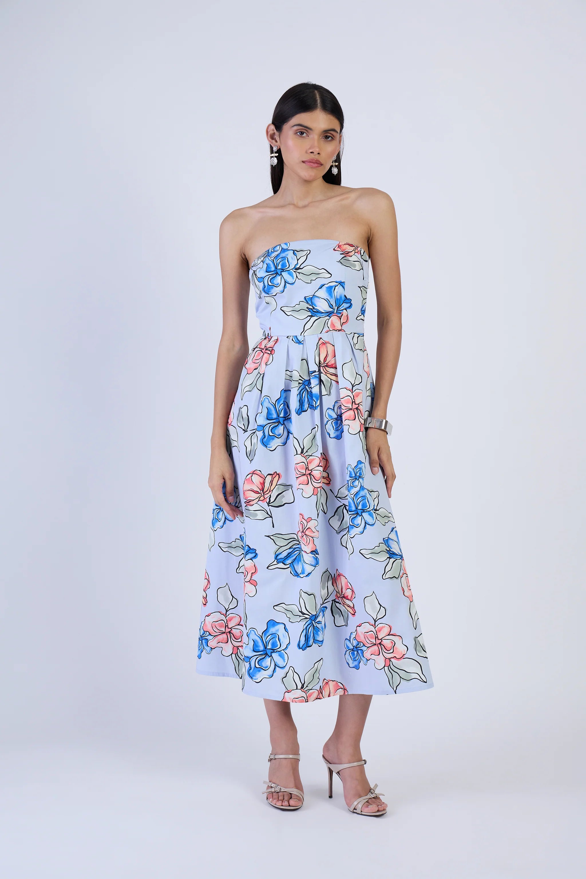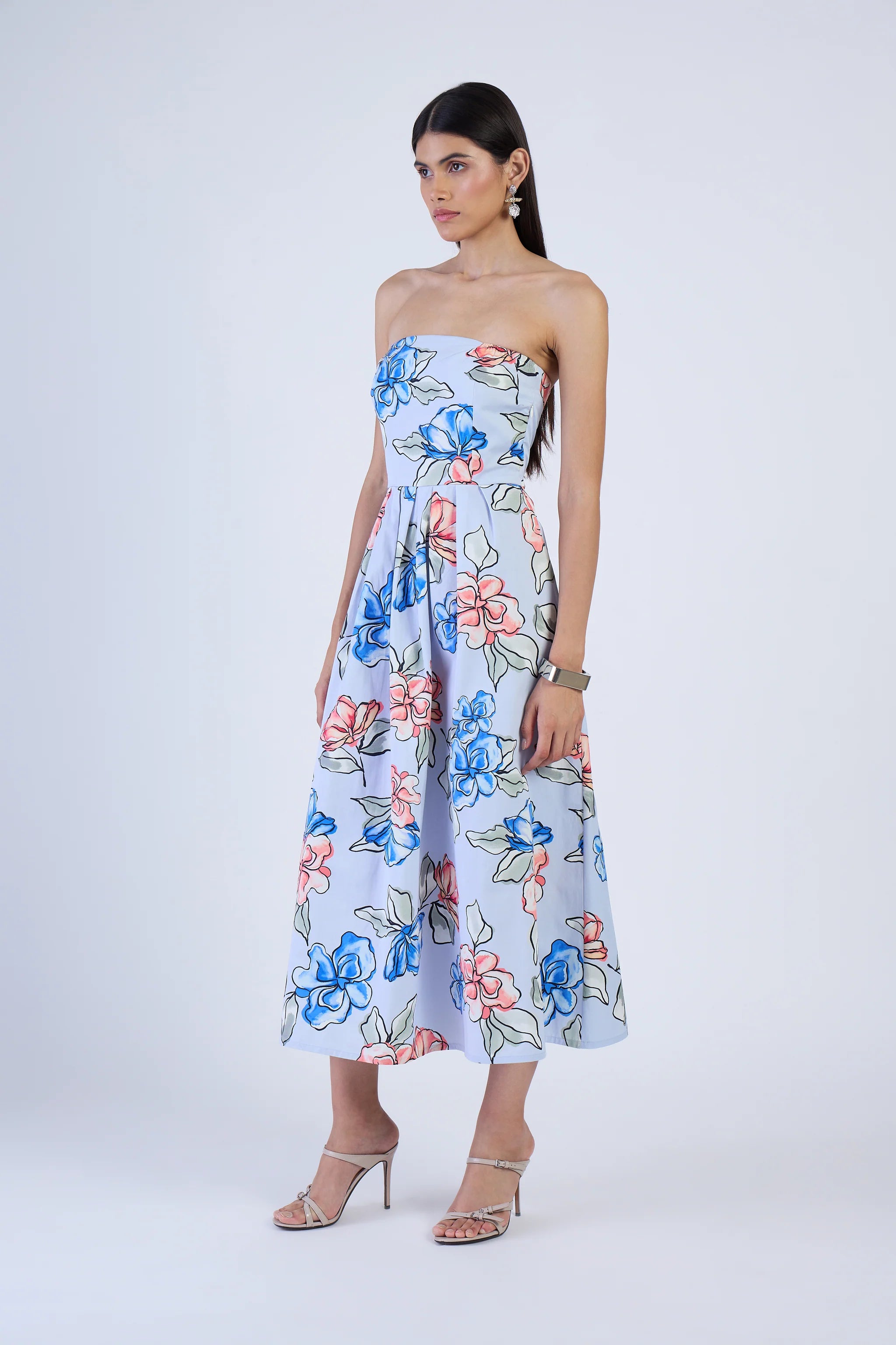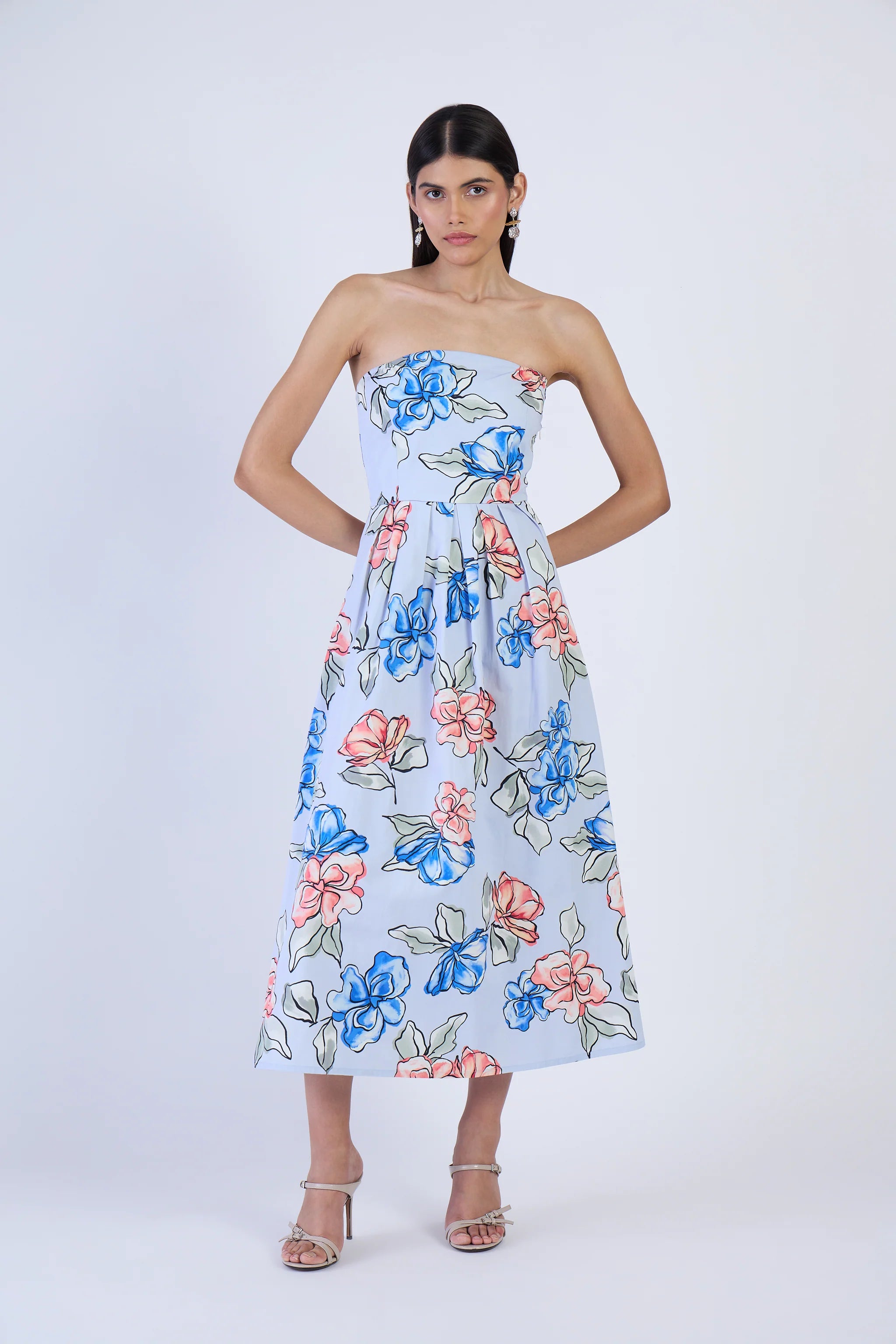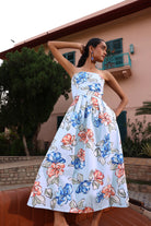 Designed with an elegant off-shoulder neckline, it features a fitted waist with elastic in the back for a flawless fit. Hidden pockets bring a fun, effortless touch, making Rory the perfect balance of style and ease for any occasion, day or night. Rory is made from breathable cotton twill, a softly structured fabric with a refined texture and elevated look. Modern yet soft, this pastel-toned print channels a sense of contemporary romance imagined for a ride through Rome in a vintage convertible.