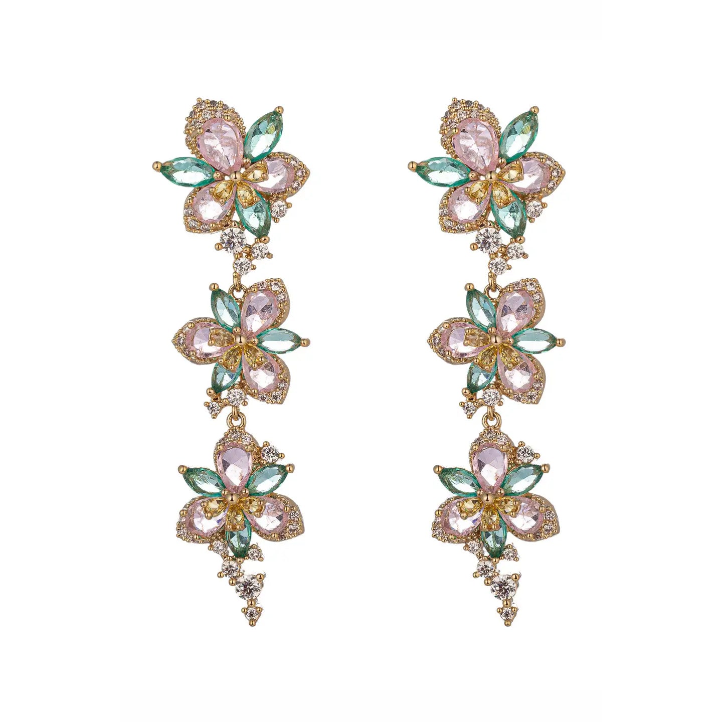 Garner that springtime look with these lovely flower earrings! These drop earrings are home to stunning flower pendants that are brought to life by glamorous crystals set on bright gold brass. Wear these dangle earrings with your favorite sundress for a charming new look!