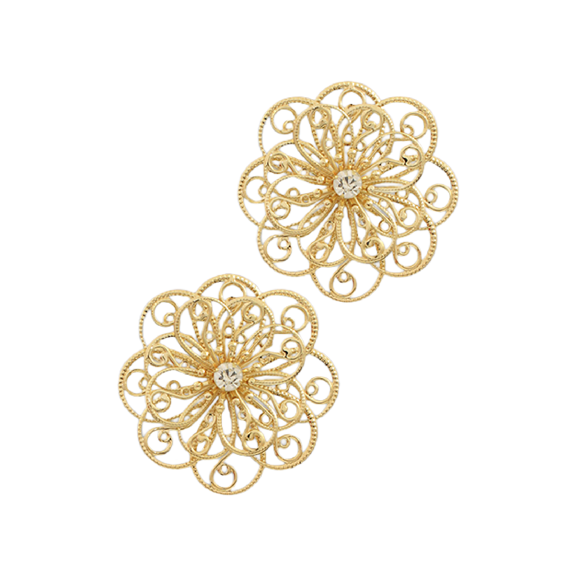 Add a touch of elegance to your outfit with our Filigree Flower & Bud Earring. Featuring exquisite gold floral metalwork and a sparkling crystal stone in the center, this subtle and elegant earring is perfect for any occasion.