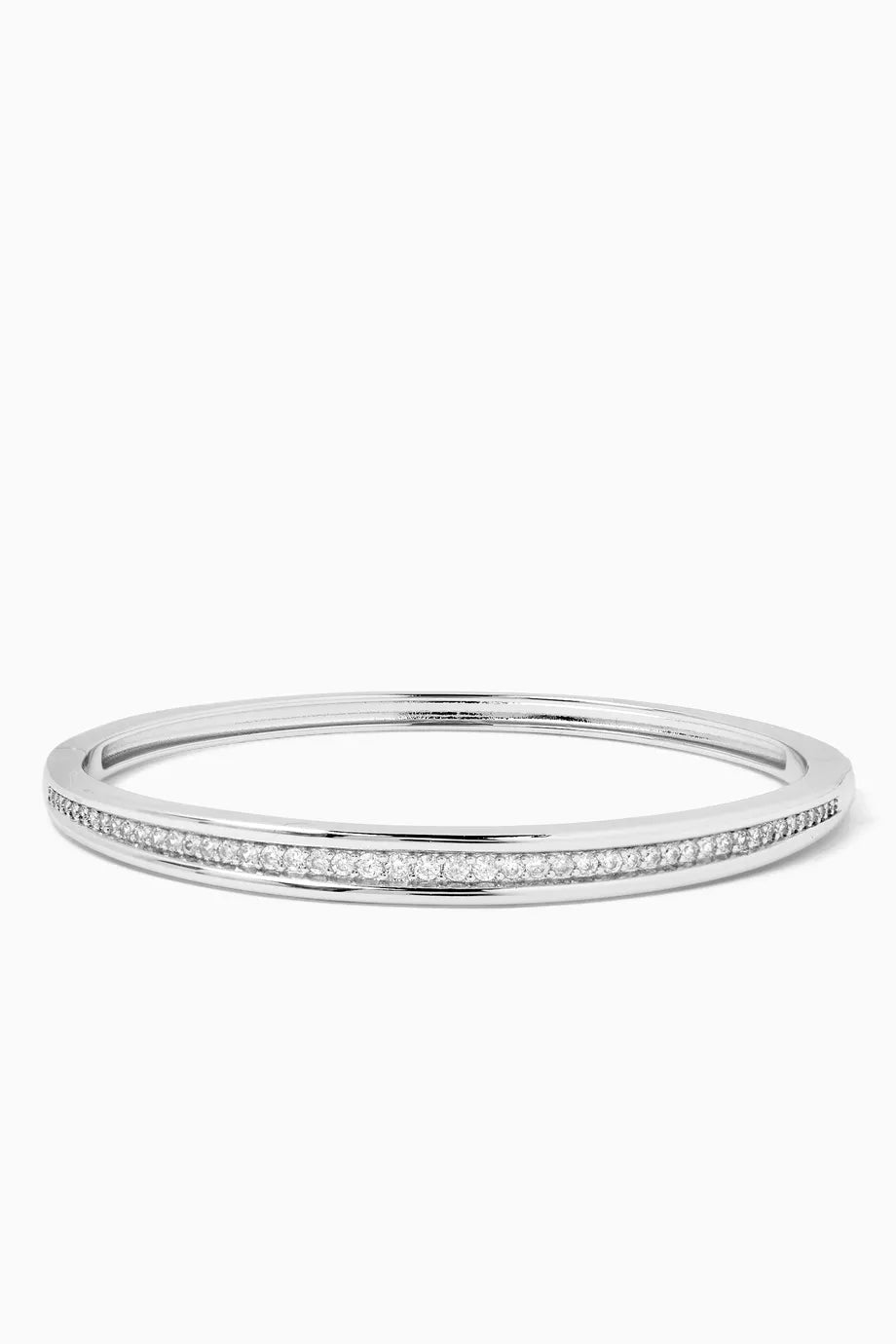 Part of Luv Aj's Wave edit, this ridged cuff bracelet is a sculpted, modern staple. Sealed by a seamless hinge closure, this silver-plated cuff makes a sparkling statement with its row of pave crystals.