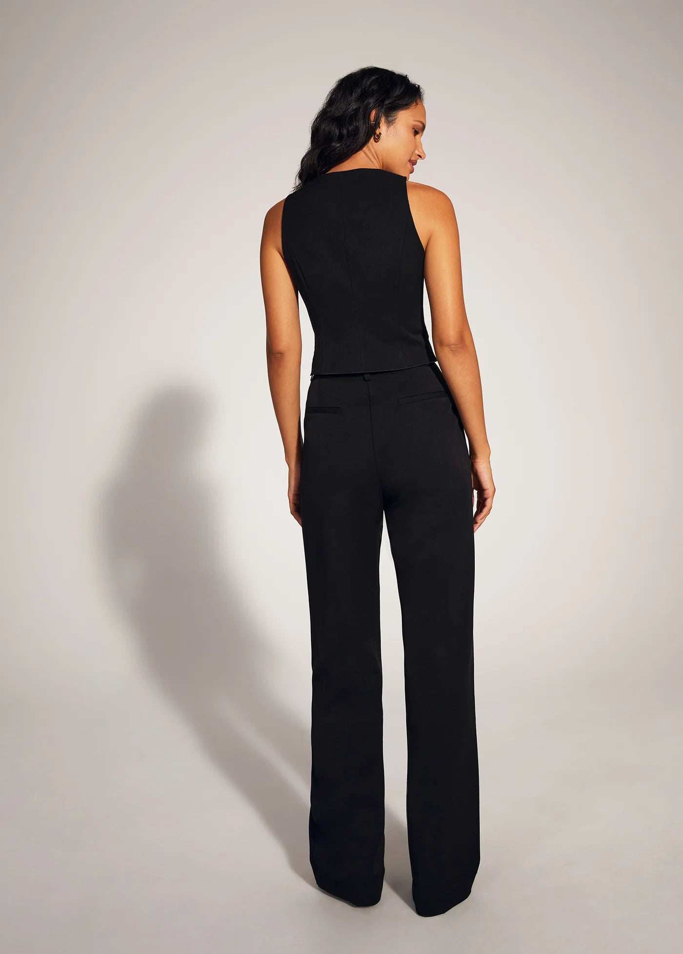 Everyone's favorite. (Hence, the name.) These tailored, best-selling beauties have a fluid 34" wide-leg silhouette with a 12.75" high waist and front pleats. Crafted from a blend suiting fabric with front pockets and a relaxed fit, these black trousers stand tall on their own but look especially sharp paired with the Favorite Blazer & coordinating vest.