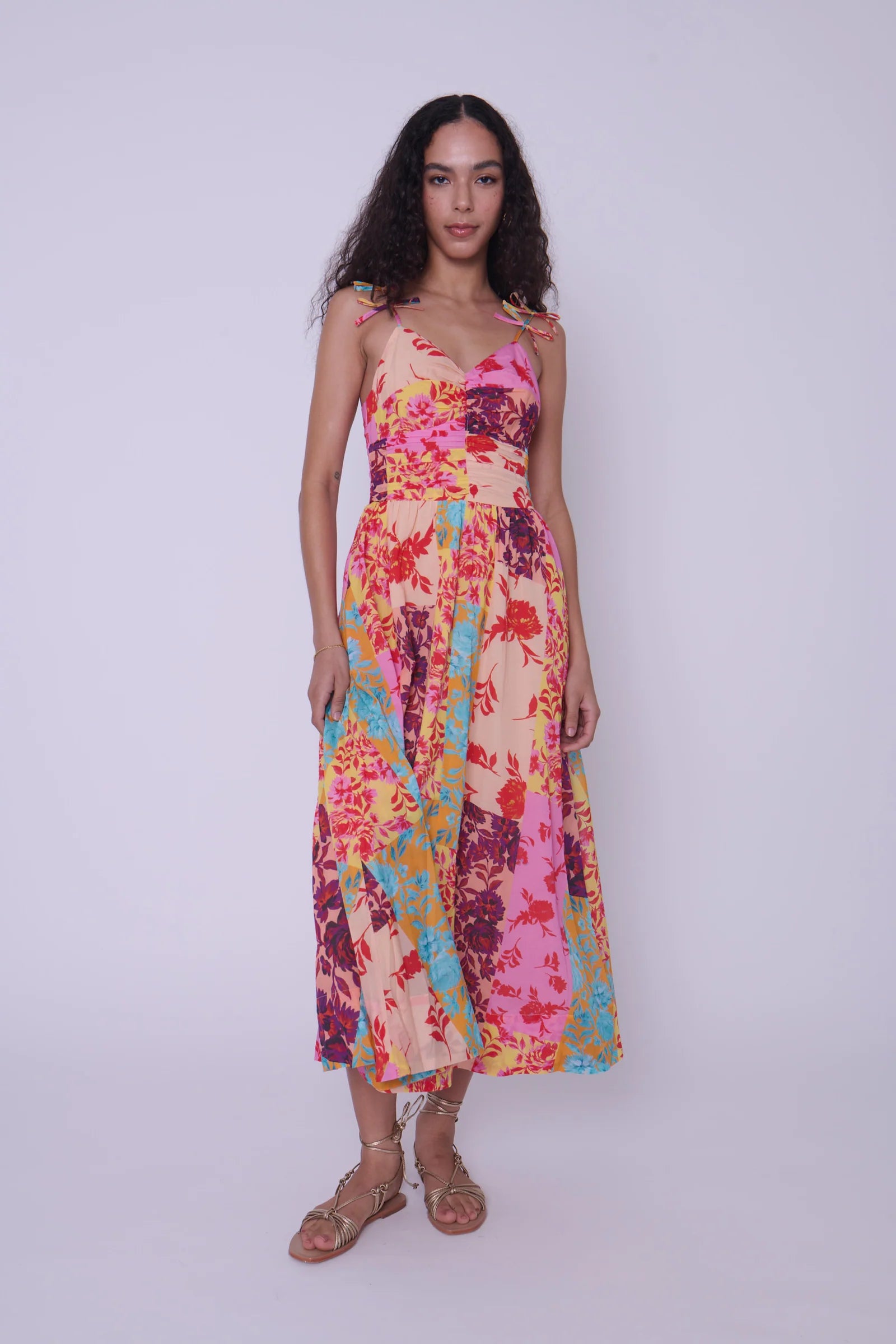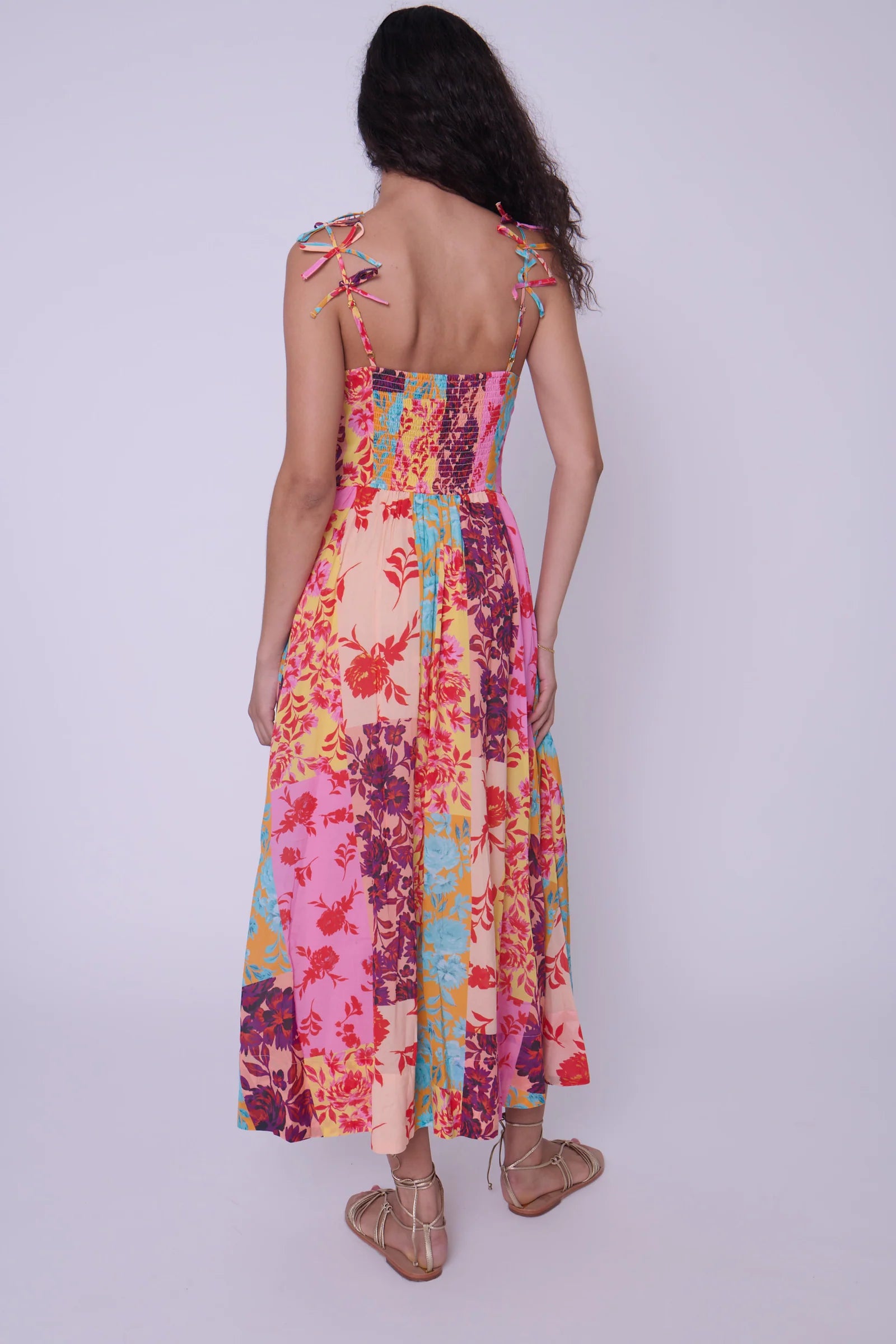 Welcome the Micah Dress in the Paradise Lost Print. The romantic maxi dress features mini bows at the straps and a gathered front bodice. This whimsical long dress has side seams pockets and a smocked back bodice for ease.