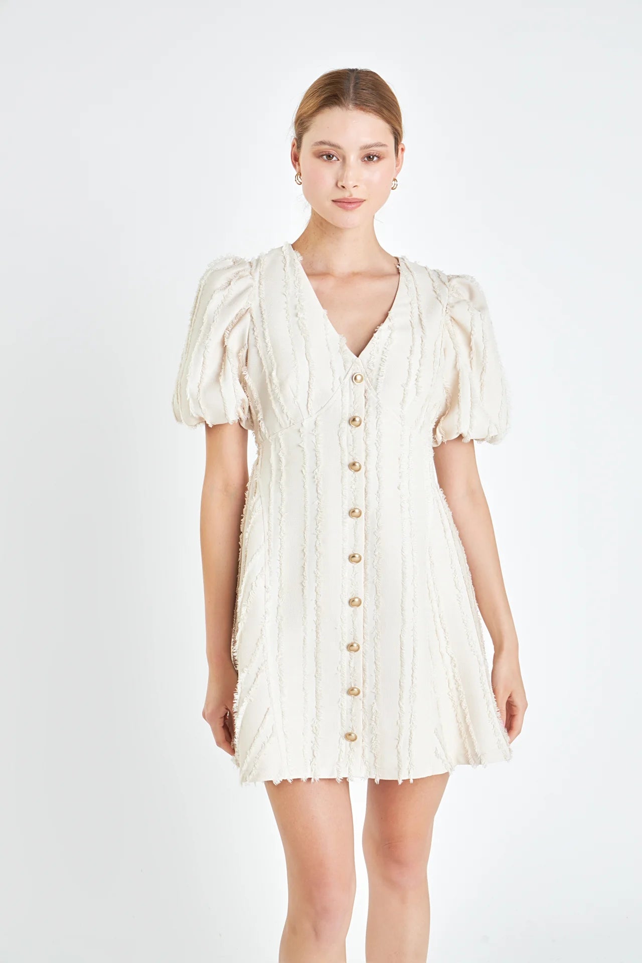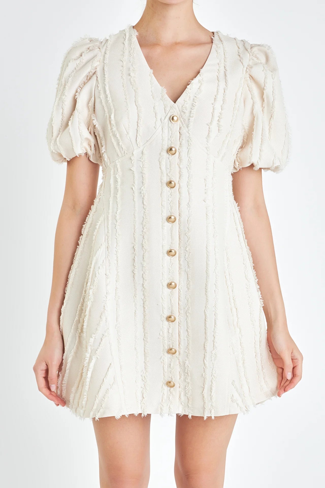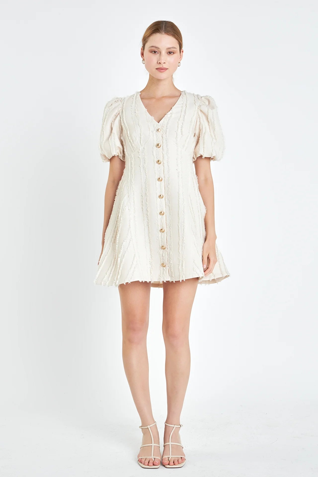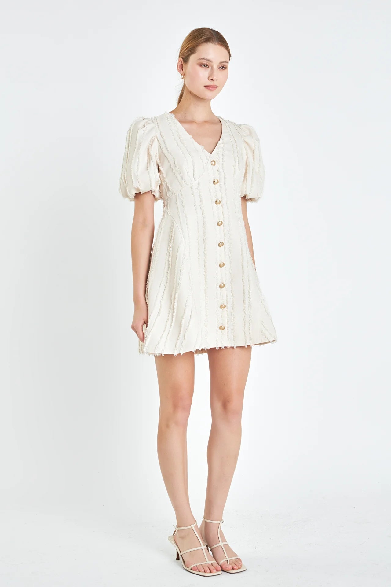 Get ready to turn heads in this stylish Textured Buttoned Mini Dress. With its flattering mini length and V neck line, this dress is perfect for both day and night. The textured fabric adds a touch of sophistication and the buttons add a playful element to the design. Wear it with heels for a night out or with flats for a more casual look. Versatile and chic, this dress is a must-have in your wardrobe. Elevate your style game and stand out from the crowd in this must-have dress.