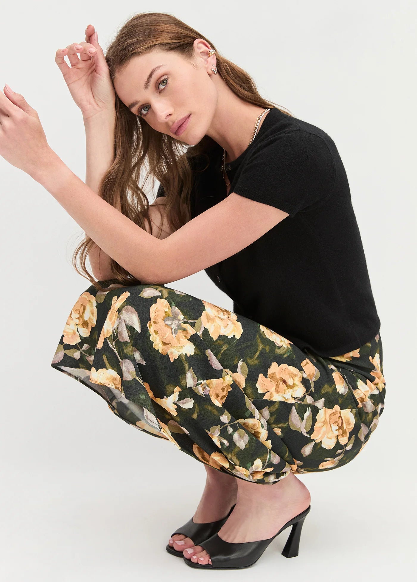 For special occasions. Any occasion, actually. The bias-cut Favorite Skirt in our Golden Flowerbed print has a high, pull-on waist and a billowy fit that hugs in all the right places. Measuring 34.5" from waistband to hem, it's cut from a soft viscose blend with a delicate feel--and it's super easy to style up or down. (It looks especially effortless with The Amelia Top or a classic tee.)