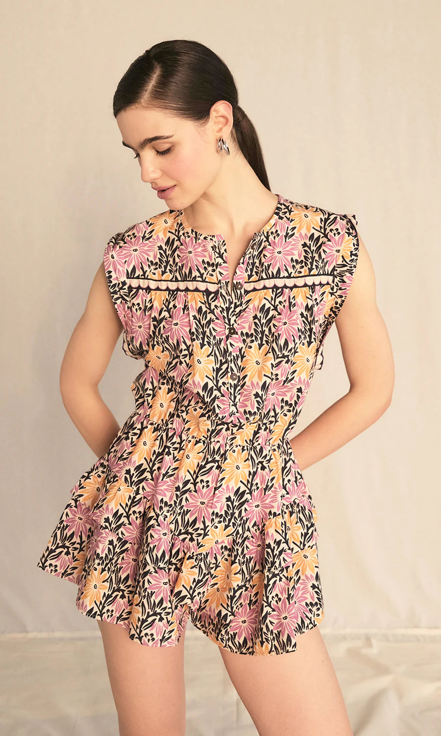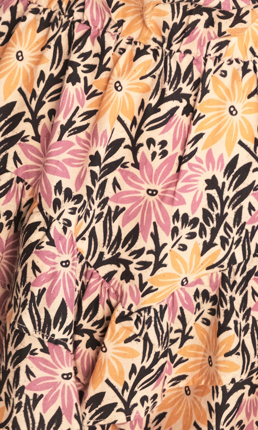 Floral wonder, our Xena romper is the perfect one and done look. The playful playsuit is made from a floral batik cotton fabric. She's soft and breathable, with a button front. Pair Xena with knee high boots for a fall ready look.