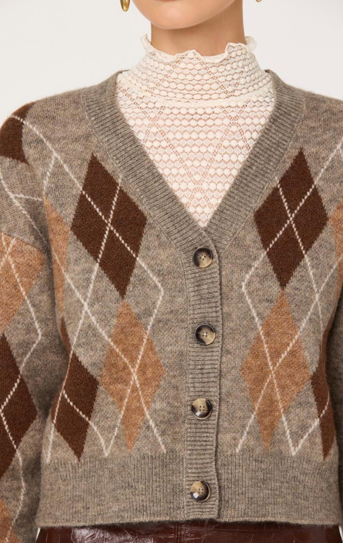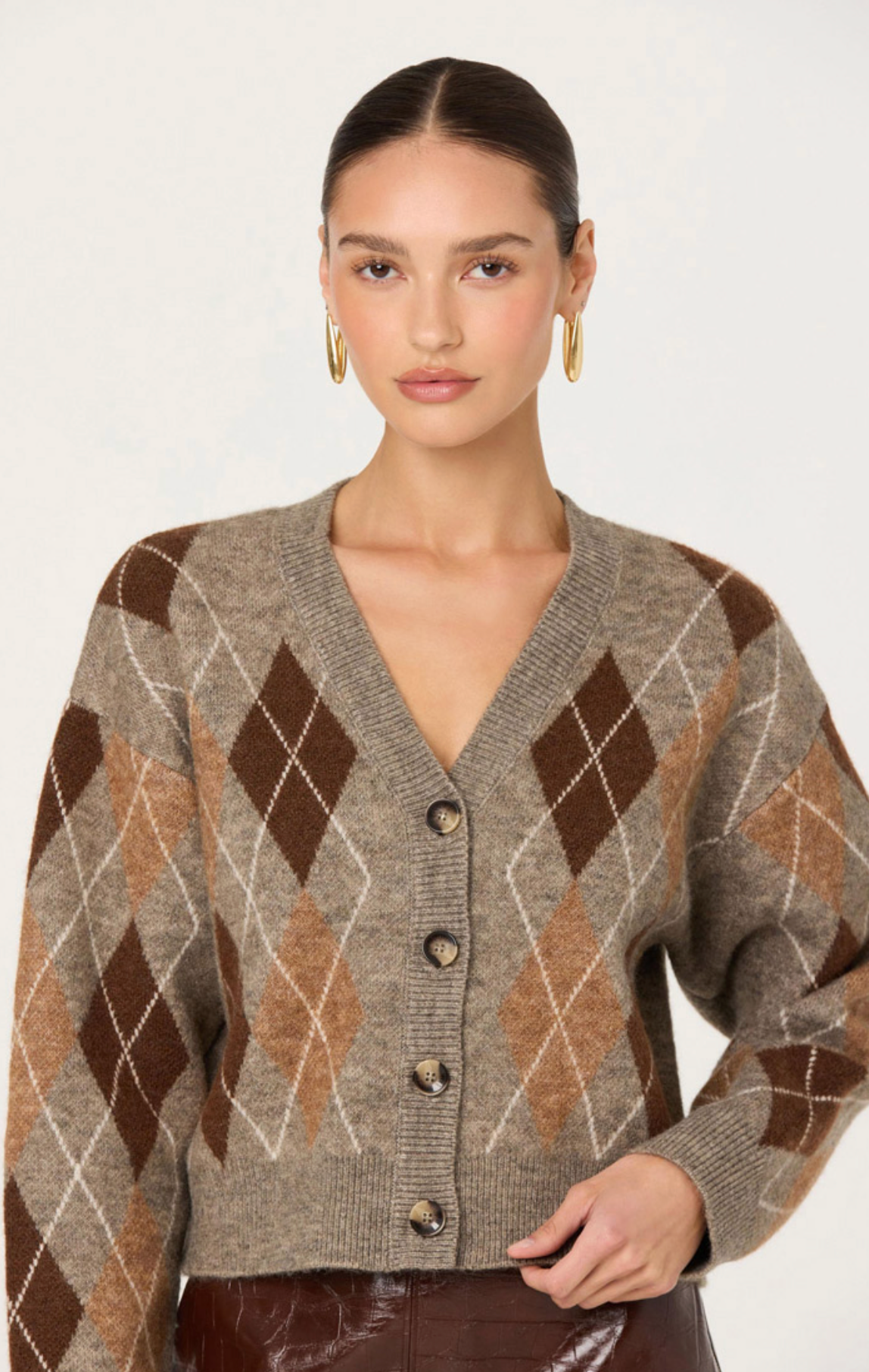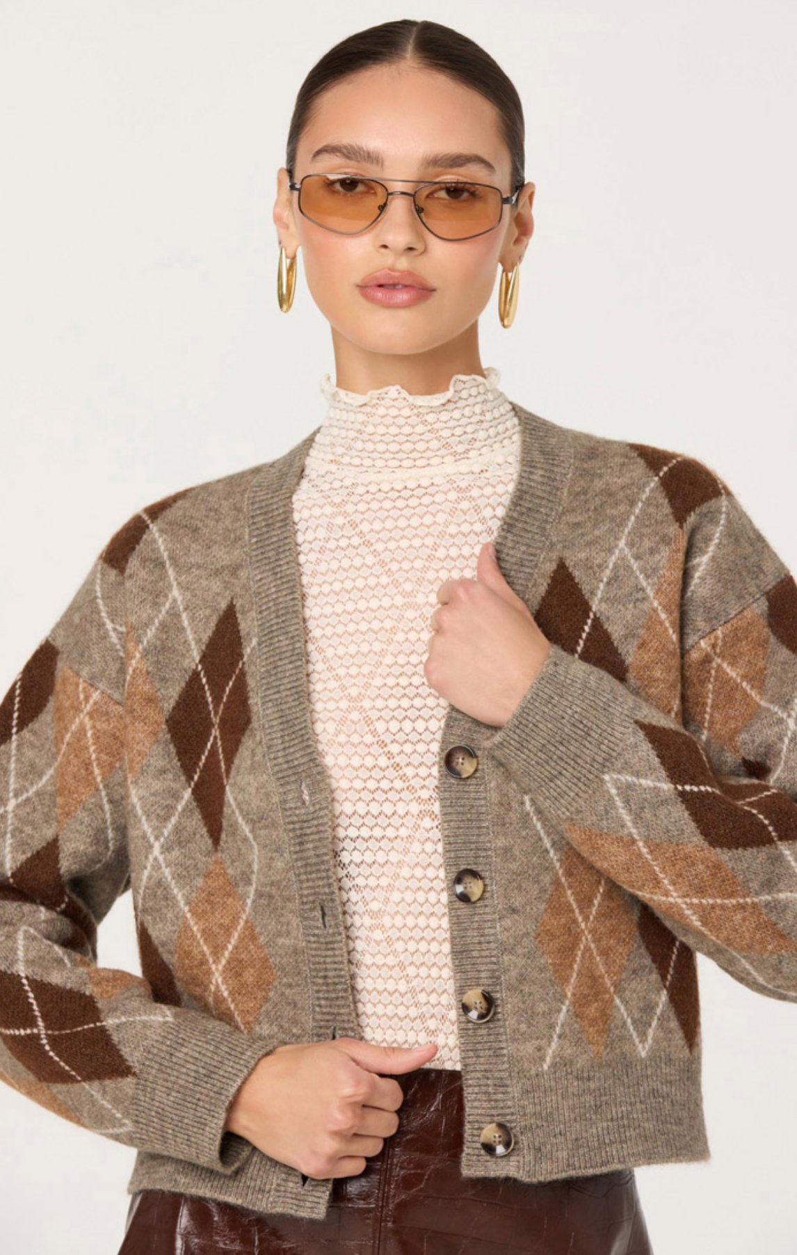 The Ashtyn Cardigan brings timeless elegance to your seasonal wardrobe. This brown argyle design offers a refined take on a classic pattern, perfect for layering over your favorite pieces. Crafted for comfort, it delivers the cozy warmth you crave without compromising on style.
