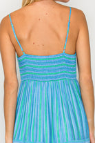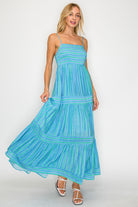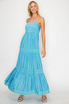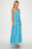 This flowing maxi dress captures the essence of a nautical getaway with effortless summer style. Perfect for beach vacations, seaside brunches, or any coastal escape calling for breezy sophistication.