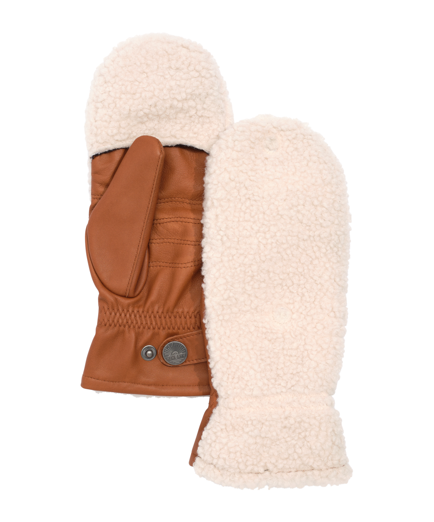 The Fleece Pop Top Mitten features luxurious brown leather paired with soft fleece for a refined look and exceptional warmth. Designed with a magnetic pop-top, these mittens offer versatile wear and easy access when needed. Perfectly balancing elegance and practicality for sophisticated cold-weather comfort.