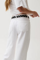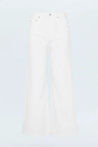 The perfect summer jean, designed to sit low on the hips with a relaxed palazzo leg silhouette. Crafted from a lightweight rigid denim and offered in white colored denim.