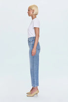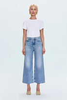 A best-selling silhouette, Lana sits high at the waist with an ultra wide leg and cropped 27" inseam that delivers easy drama. The raw hem adds lived-in texture, while the relaxed fit moves with understated confidence. Crafted from our signature comfort stretch denim in Bistro, a medium vintage blue wash with natural fading that captures laid-back polish.