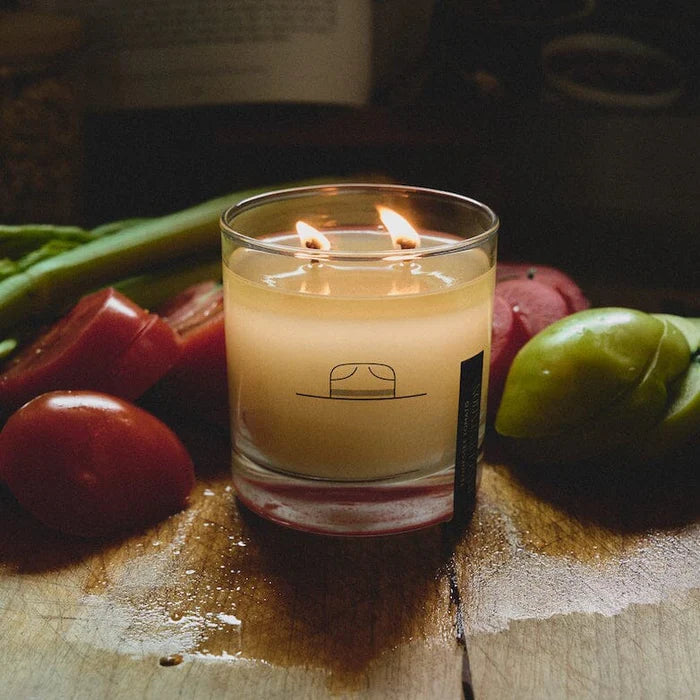 A nod to our state fruit, Tennessee Tomato is our ode to summer sun + the fresh, earthy smells of backyard gardening. Whether you're an apartment dweller or a homesteader, let Tennessee Tomato's light and refreshing aroma transport you to sunny days spent with dirt underneath your nails. When you've burned through the candle, easily clean it out to recycle into a cocktail glass, so you can enjoy the included cocktail pairing for a refreshing Mezcal Bloody Maria!