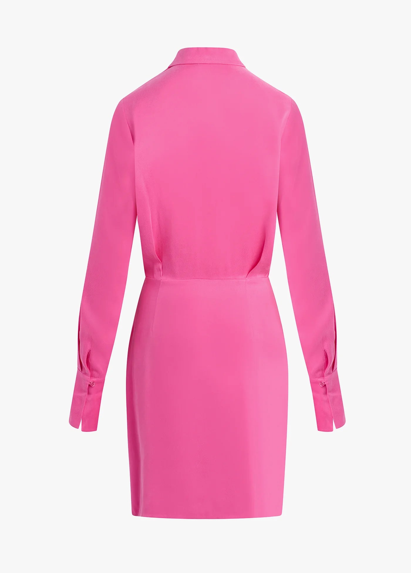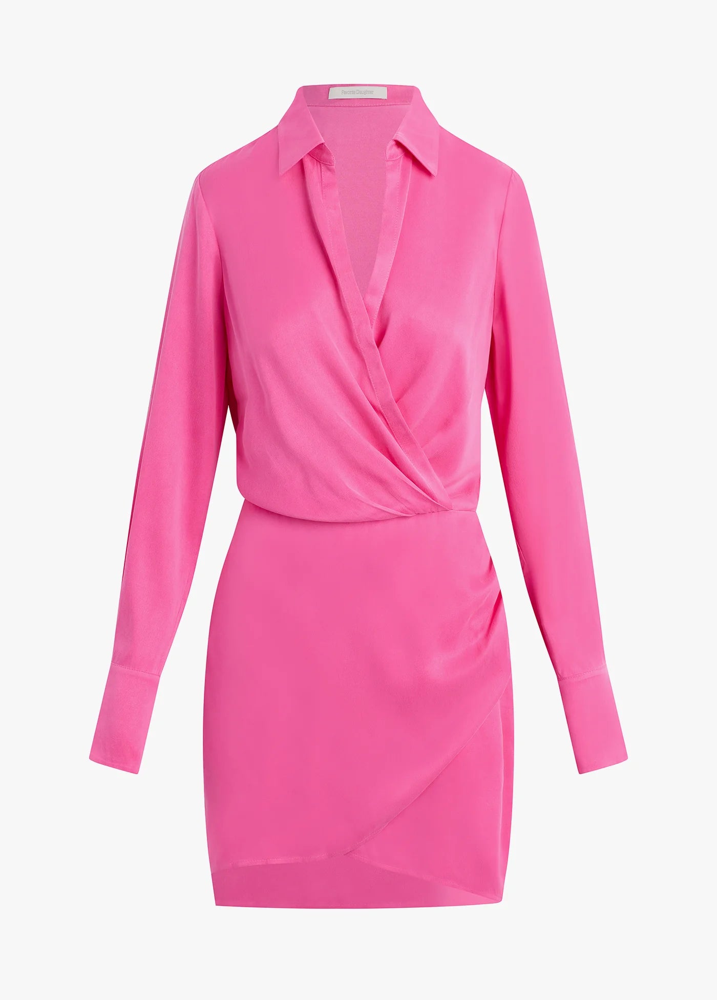 Be the best-dressed guest at the table with The Dinner Party Dress. This sleek 35.75" mini is designed with a wrapped silhouette, long sleeves finished with wide button-cuffs, a pointed collar and an invisible side zipper. Beyond the chic styling, we love the satiny fabric that has a soft silky feel.